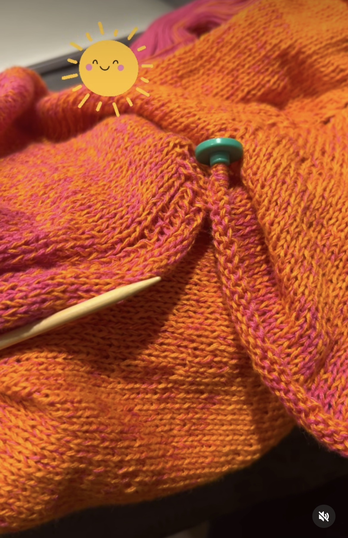 So, jetzt muss es aber endlich mal ein Teil für mich selbst werden! Ich hatte mir das letzte Knäuel eines Farbverlaufs in Pink und Orange geschnappt aus dem ich mir einen Sommerpulli stricke.